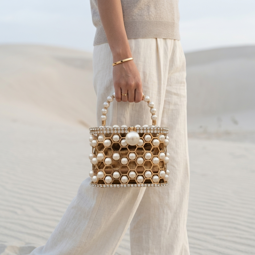 Compact yet statement-making ideal for elevated day-to-evening styling